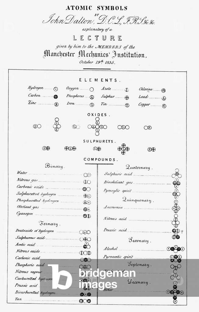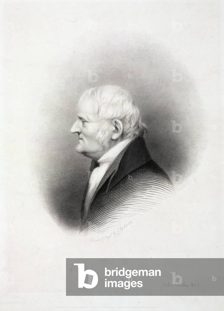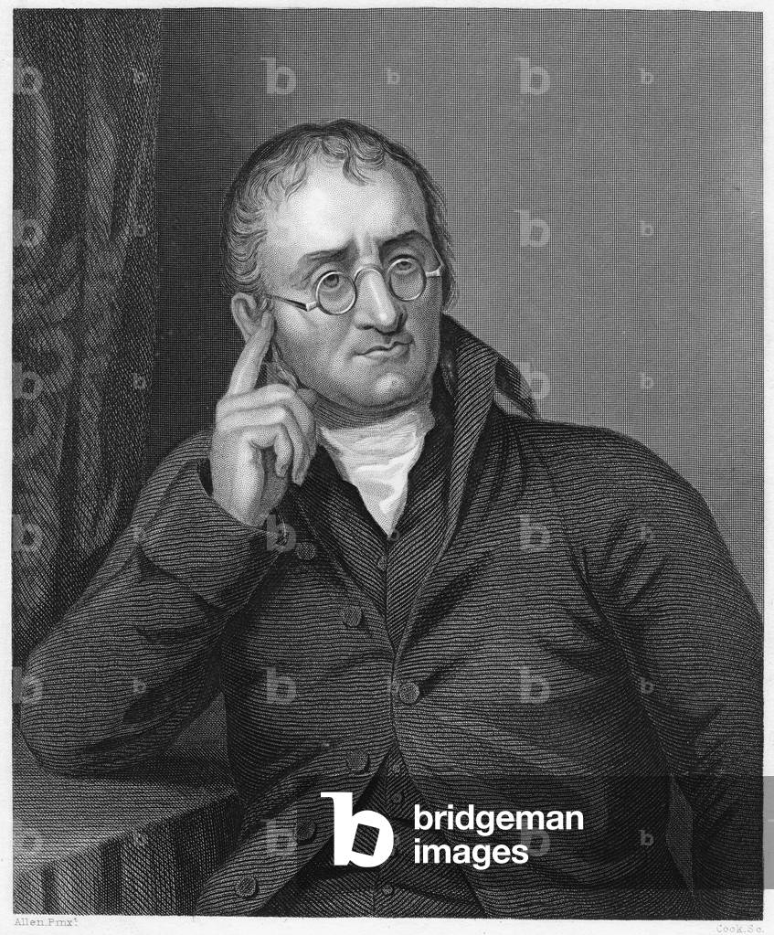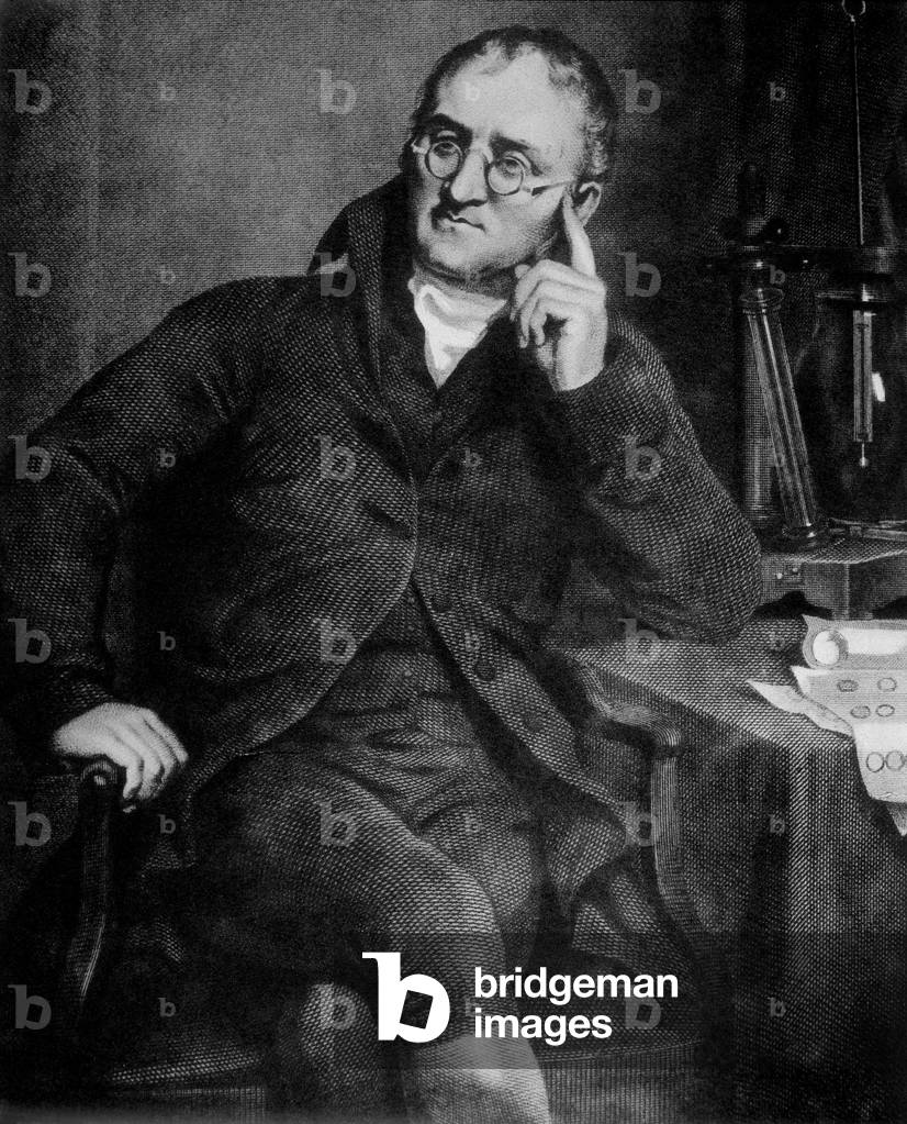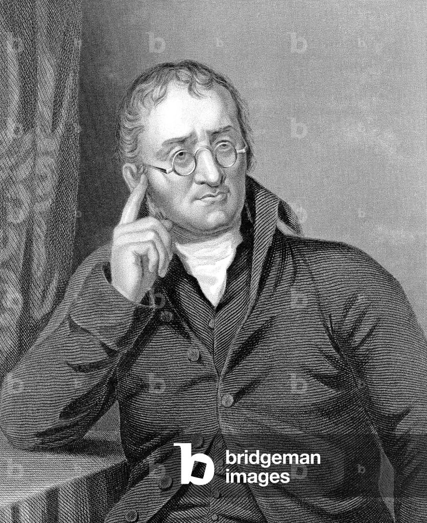 UIS5071362 John Dalton, English chemist, early 19th century. John Dalton (1766-1844) formulated the atomic theory to explain chemical reactions, based on the concept that the atoms of different elements are distinguished by differences in their weights. This theory has influenced scientific thought for more than a century and a half. In 1794 he first described colour blindness (Daltonism), an affliction from which both he and his brother suffered. He also kept a meteorological journal for most of his life, recording over 200,000 observations. ©SSPL/Science Museum