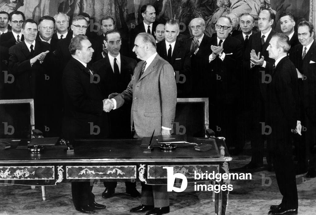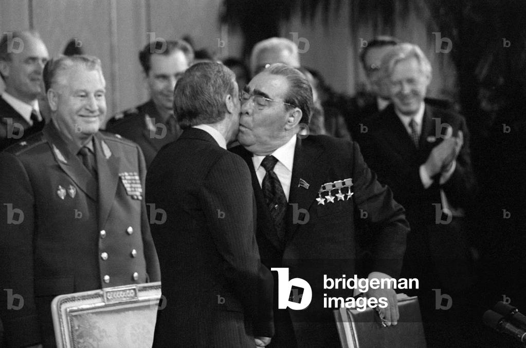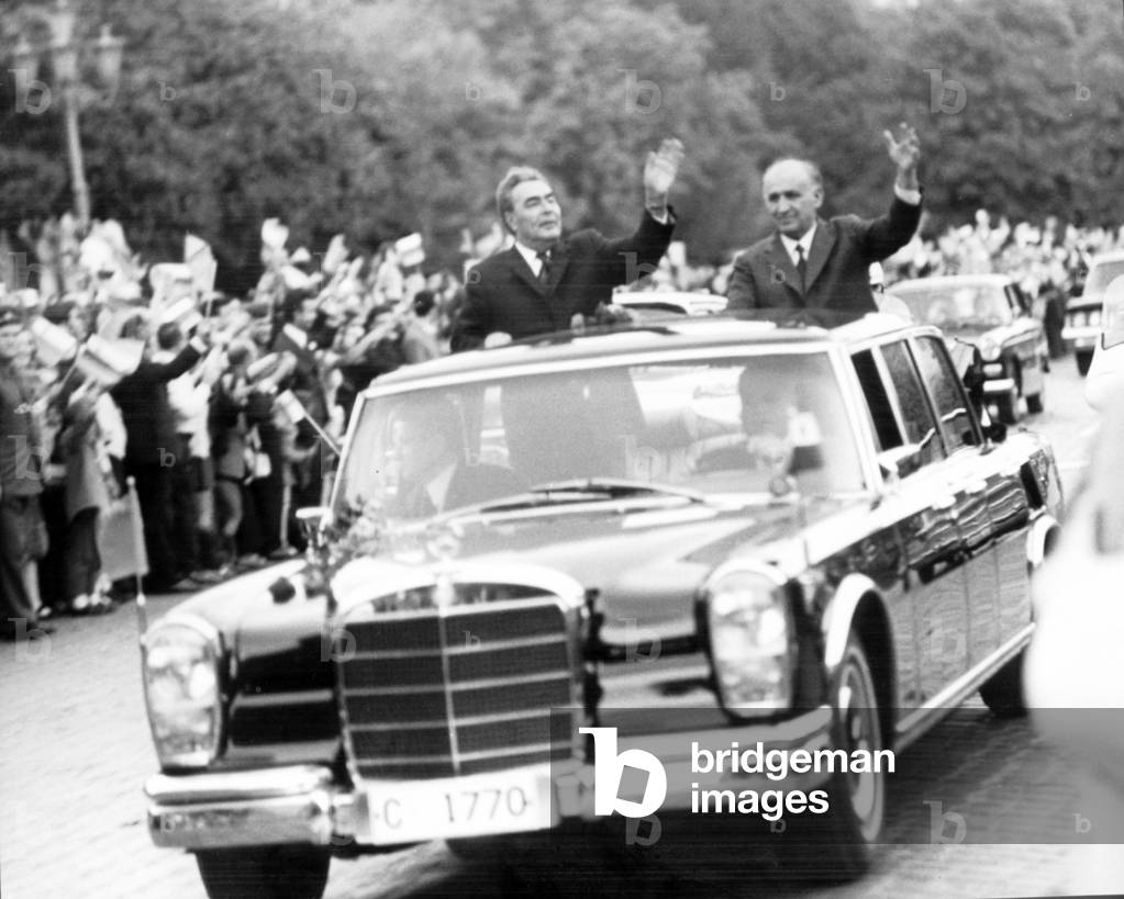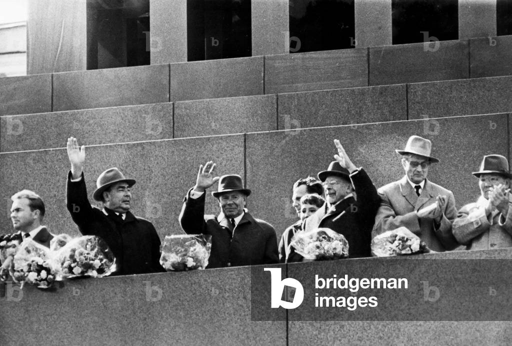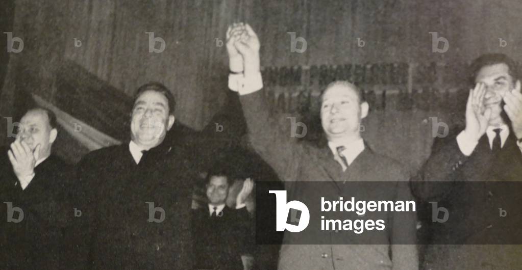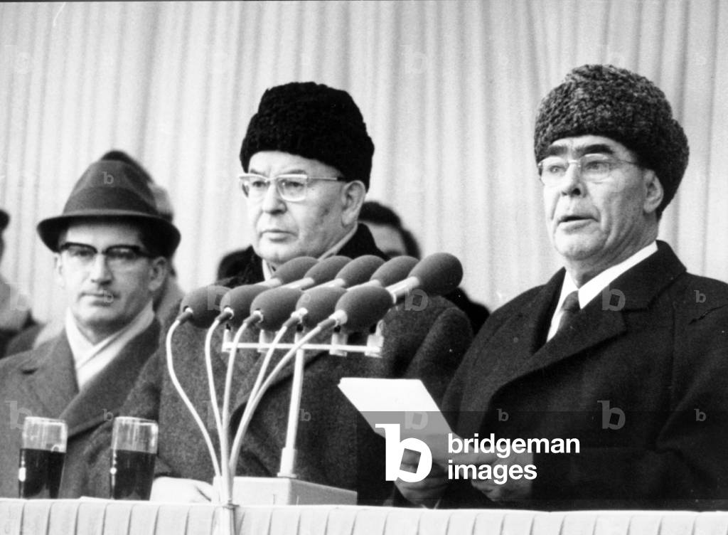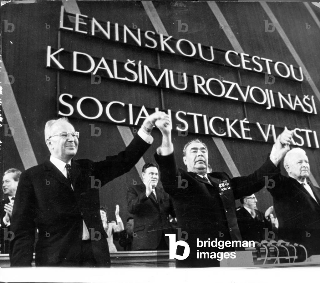 May 29, 1971, the XIV Congress of the Communist Party of Czechoslovakia ends. L. to R.: Gustav Husak, General secretary of the C.C. of the Czechoslovak Communist Party, Leonid Ilyich Brezhnev, General Secretary of the C.C. of the C.P. of the Soviet Union and Czechoslovak President Ludvik Svoboda.