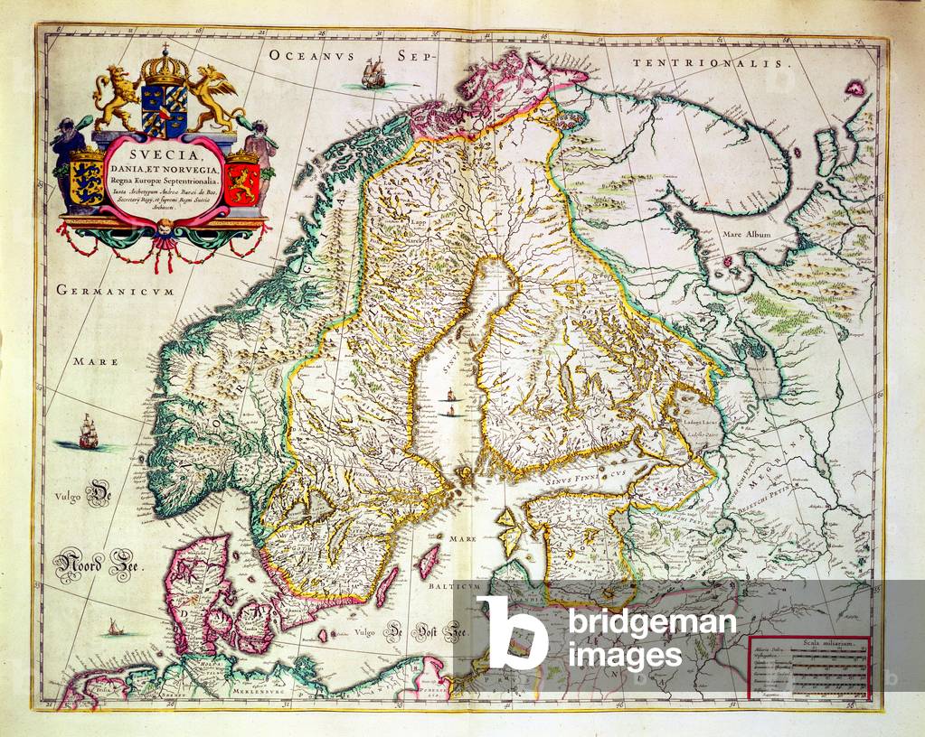 LRI4711470 Map of the kingdoms of Norway, Sweden and Denmark - Engraving from the atlas le theatre du monde, 1717, by Jean Baptiste Nolin (1686-1762) - Map of Norway, Sweden and Denmark - From “” Le Theatre du Monde”” 1717 by Jean-Baptiste Nolin