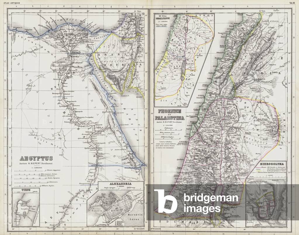 LLM7148247 Maps of Ancient Egypt, Phoenicia and Palestine. Illustration from Atlas Antiquus, Twelve Maps of the Ancient World for Schools and Colleges, by Dr Henry Kiepert (Dietrich Reimer, Berlin, c1889).