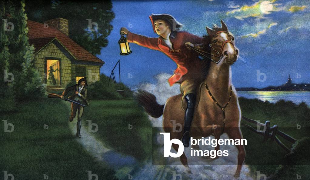 GRC3035748 Vintage illustration of the Midnight Ride of Paul Revere in 1775; screen print, 1938.