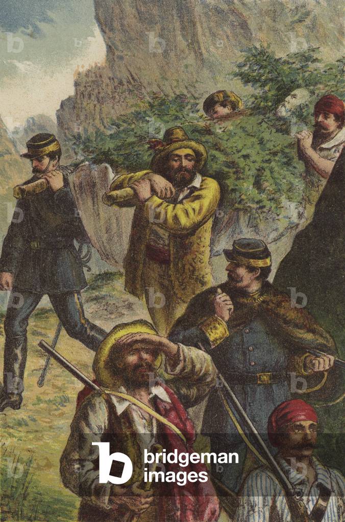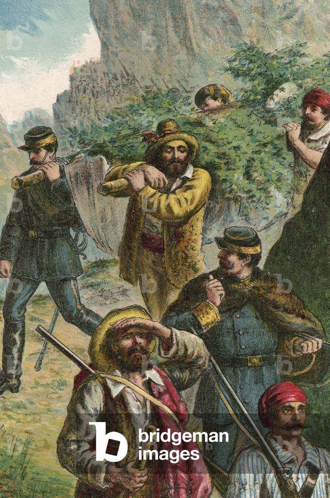 LLM2797667 Garibaldi and the peasant guides. Illustration for The Life and Times of Garibaldi (Walter Scott, 1881).