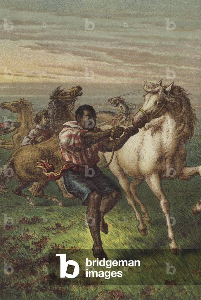 LLM2797664 Garibaldi's troopers breaking wild horses. Illustration for The Life and Times of Garibaldi (Walter Scott, 1881).