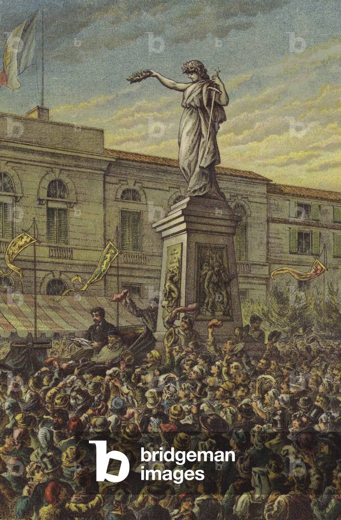 LLM2797665 Garibaldi unveiling the Mentana Memorial at Milan. Illustration for The Life and Times of Garibaldi (Walter Scott, 1881).