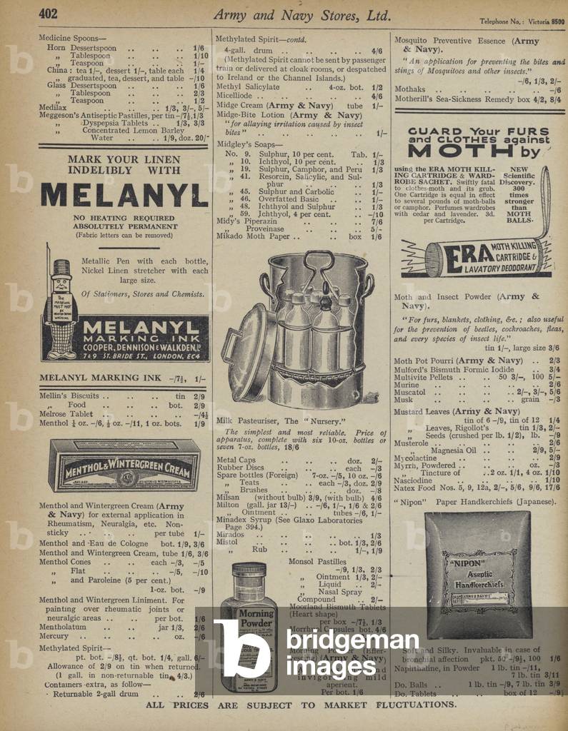 LLM5987817 Illustration for catalogue of Army & Navy Stores Ltd, 105 Victoria Street, London, SW1, 1939-40. Containing ad for drink including Lucozade