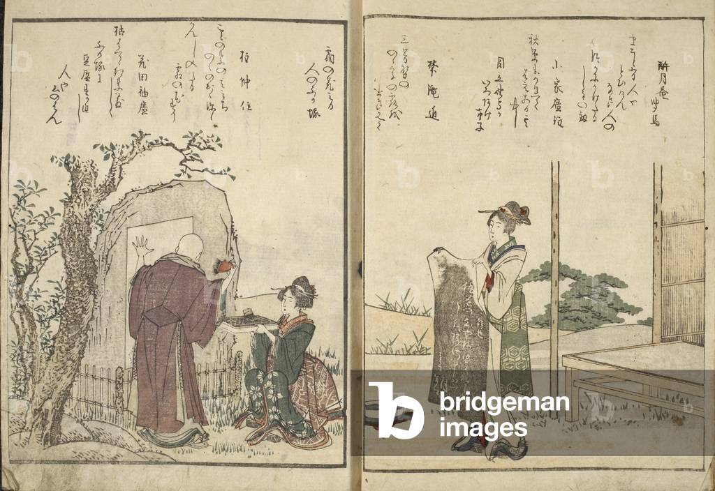 Ehon kyoka yama mata yama (Picture book of Kyoka: Illustrator: Hokusai, KatsushikaEdoLanguage: JapaneseSource/Shelfmark: 16099.c.59.(2)People and housingImage taken from: Ehon kyoka yama mata yama, 'Picture-book of Kyoka: Mountains upon Mountains'. A kyoka anthology illustrated by Hokusai. Three volumes, colour-printedEdo [Tokyo ], Japan, 1804.