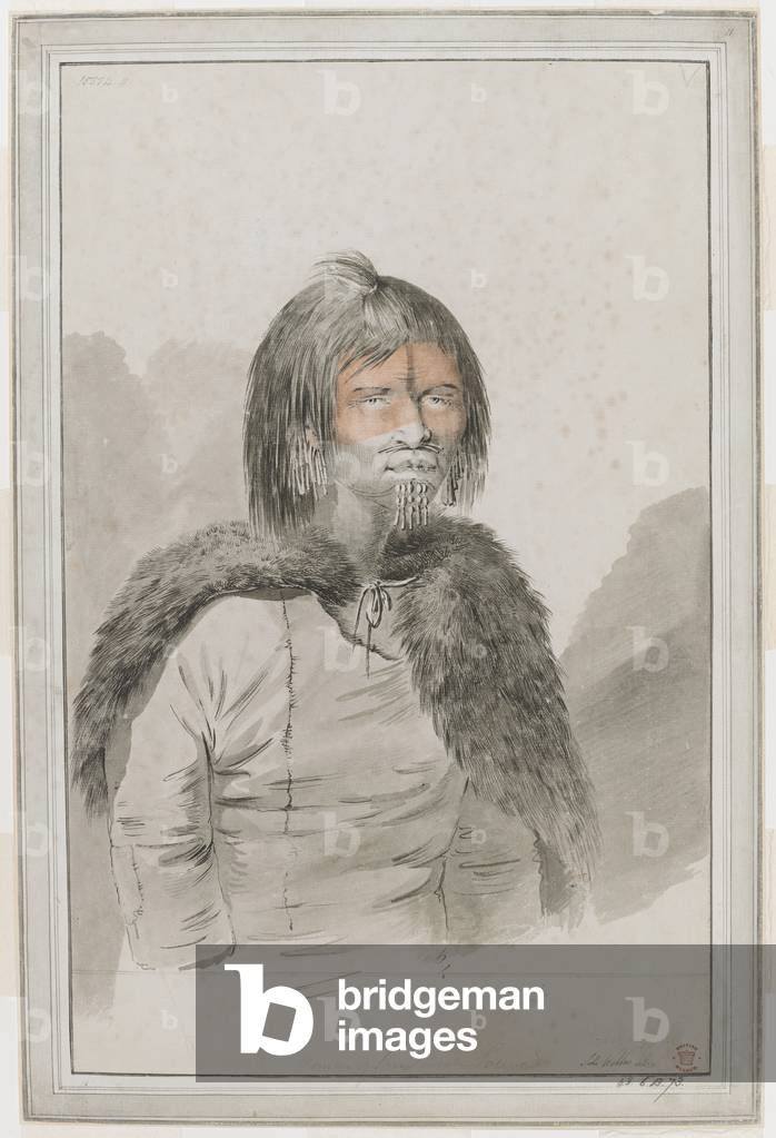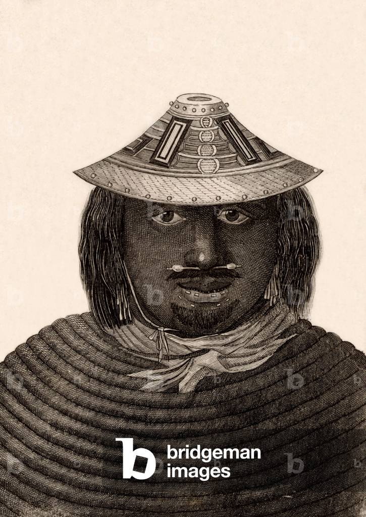 UIG864696 A man from Prince William's Sound, Alaska. Engraving from "Captain Cook's Original Voyages Round the World" (Woodbridge, Suffolk, c1815).