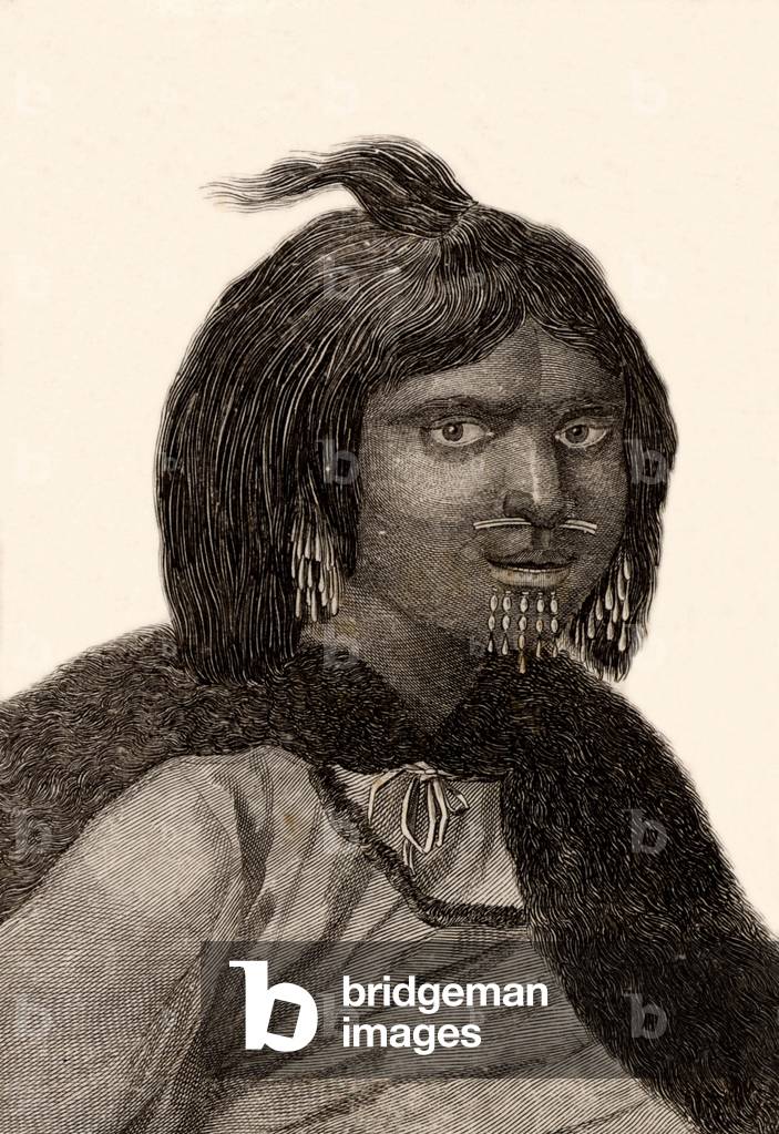 UIG864695 A woman from Prince William's Sound, Alaska. Engraving from "Captain Cook's Original Voyages Round the World" (Woodbridge, Suffolk, c1815).