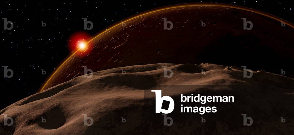 PIX4617121 Mars eclipse the Sun - Illustration - Phobos Eclipse - Artwork - Eclipse of the Sun seen from Phobos, one of Mars's satellites. Solar eclipse seen from Phobos.