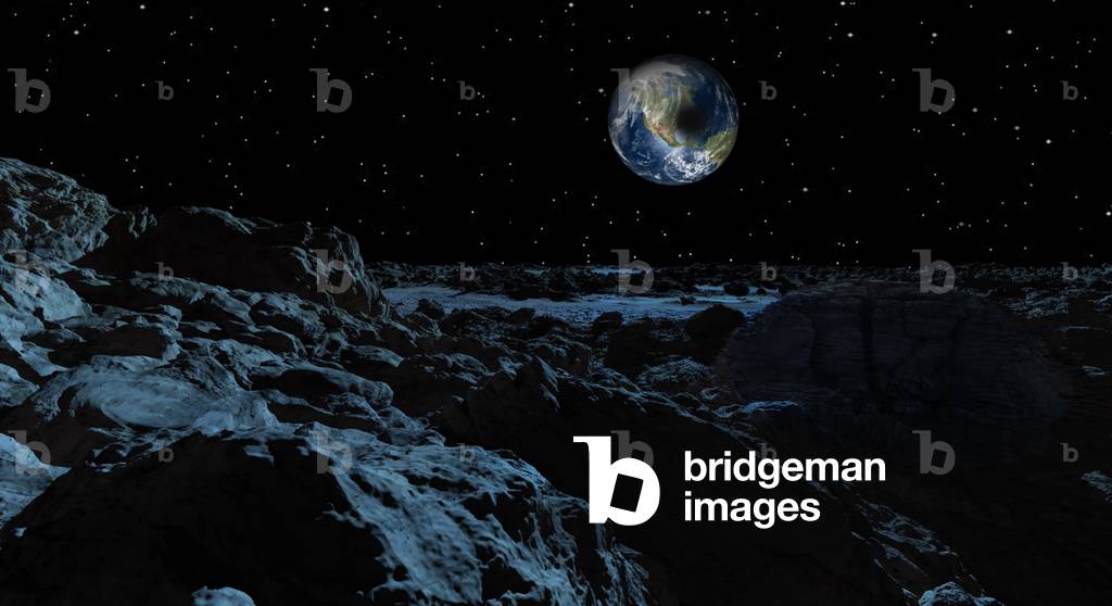 PIX4580036 Eclipse seen from the Moon - Illustration - Eclipse seen from the Moon - Illustration - Earth eclipse the Sun seen from the Moon. Illustration from 1981. Earth as seen from the Moon during an eclipse - Illustration, 1981