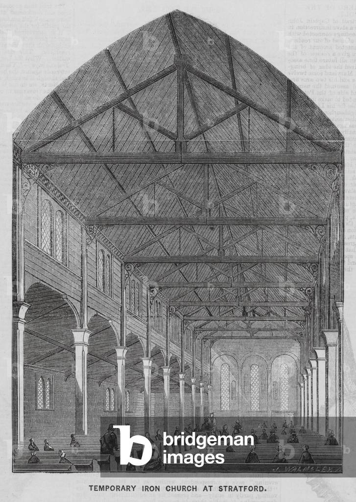 LIP8677023 Temporary iron church, Stratford, London. Illustration from The Illustrated News of the World, 10 December 1859.
