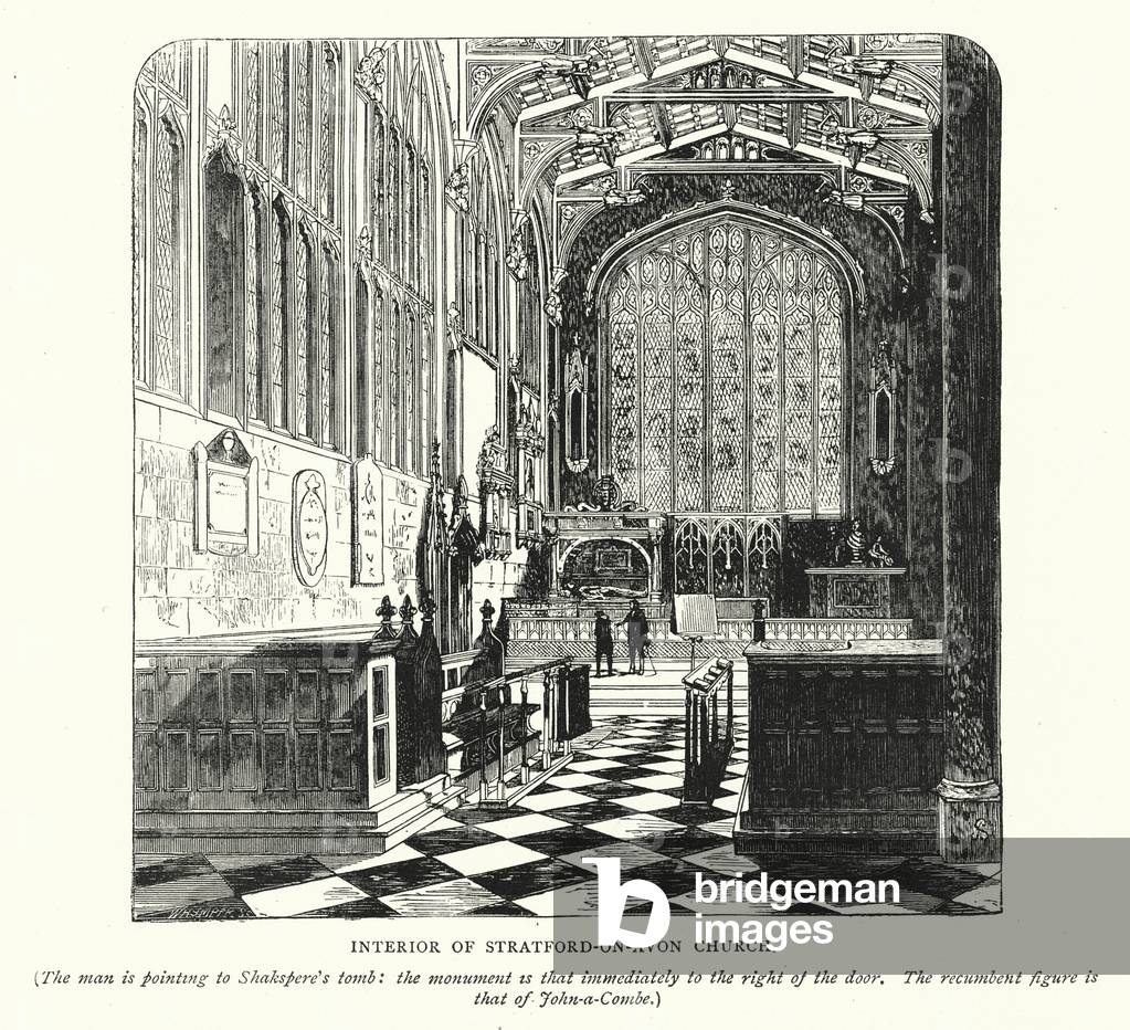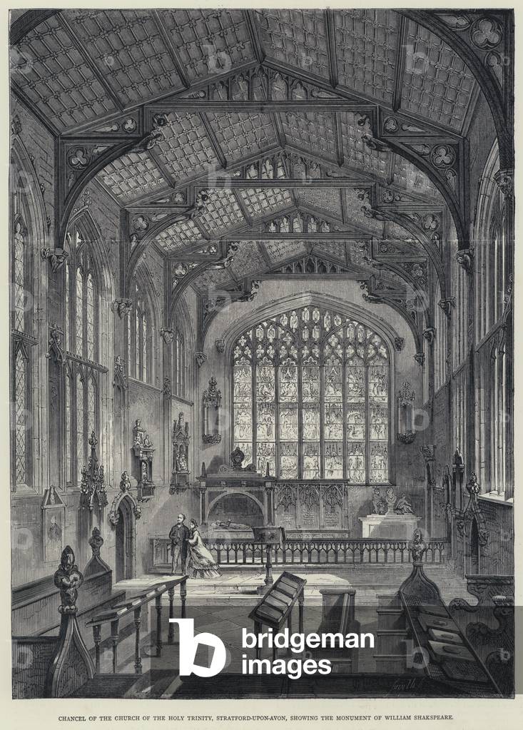 LLM5216241 Chancel of the Church of the Holy Trinity, Stratford-upon-Avon, showing the Monument of William Shakspeare. Illustration for A Shakespeare Memorial (S O Beeton, 1864).