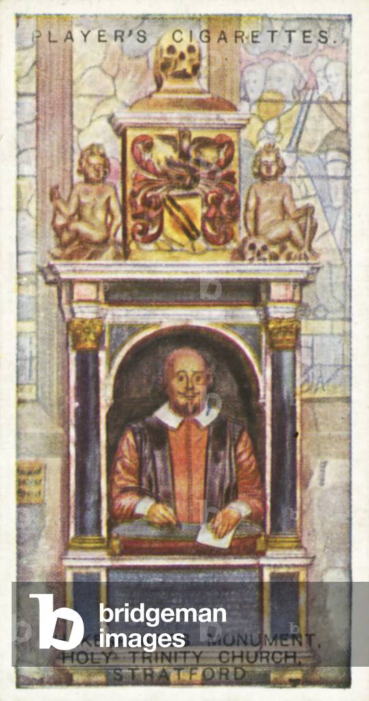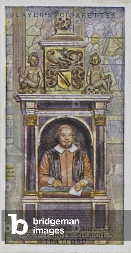 LLM8668790 Shakespeare's Monument, Holy Trinity Church, Stratford. Illustration for one of a set of 25 cigarette cards, the Shakespearian Series, issued by John Player & Sons in 1917.