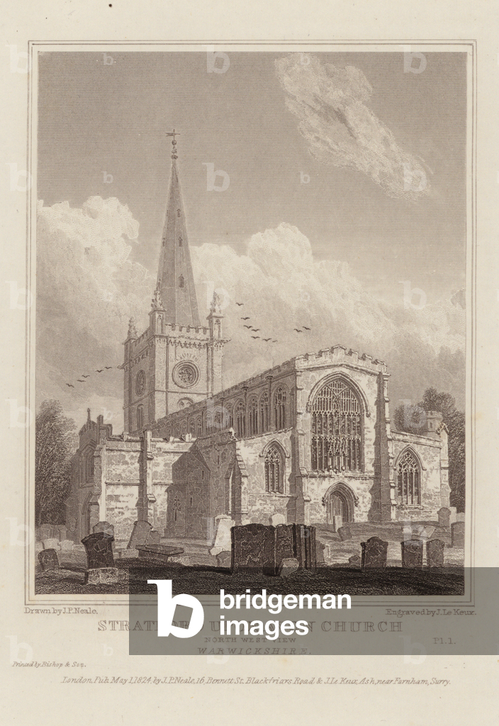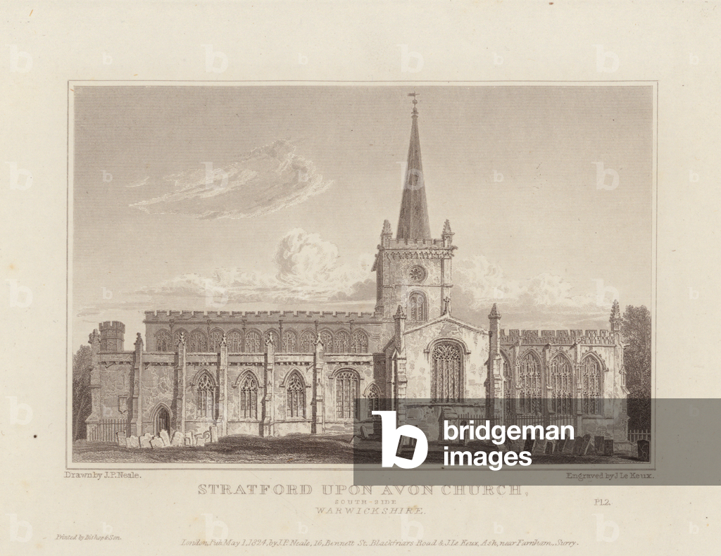 LLM11695866 Stratford Upon Avon Church, North West View, Warwickshire. Illustration for Views of the most interesting Collegiate and Parochial Churches in Great Britain by John Preston Neale and John Le Keux (Longman et al, 1824/25).By John Preston Neale