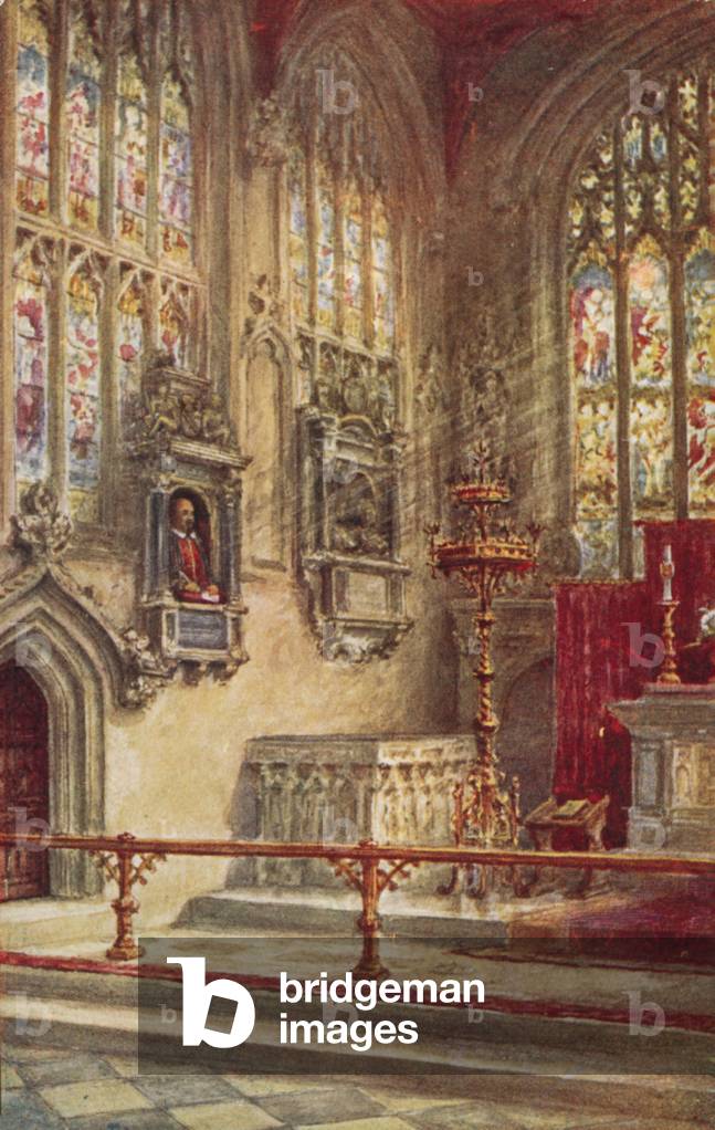 LLM8659553 Holy Trinity Church, Stratford, the chancel. Illustration for one of the Shakespearean Series of cigarette cards issued by John Player & Sons in 1917.