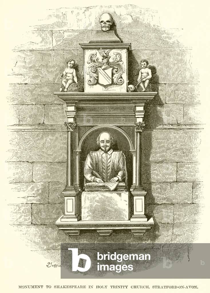 LLM671469 Monument to Shakespeare in Holy Trinity Church, Stratford-on-Avon. Illustration for The Plays of William Shakespeare edited by Charles and Mary Cowden Clarke (Cassell, c 1890). Digitally cleaned image.