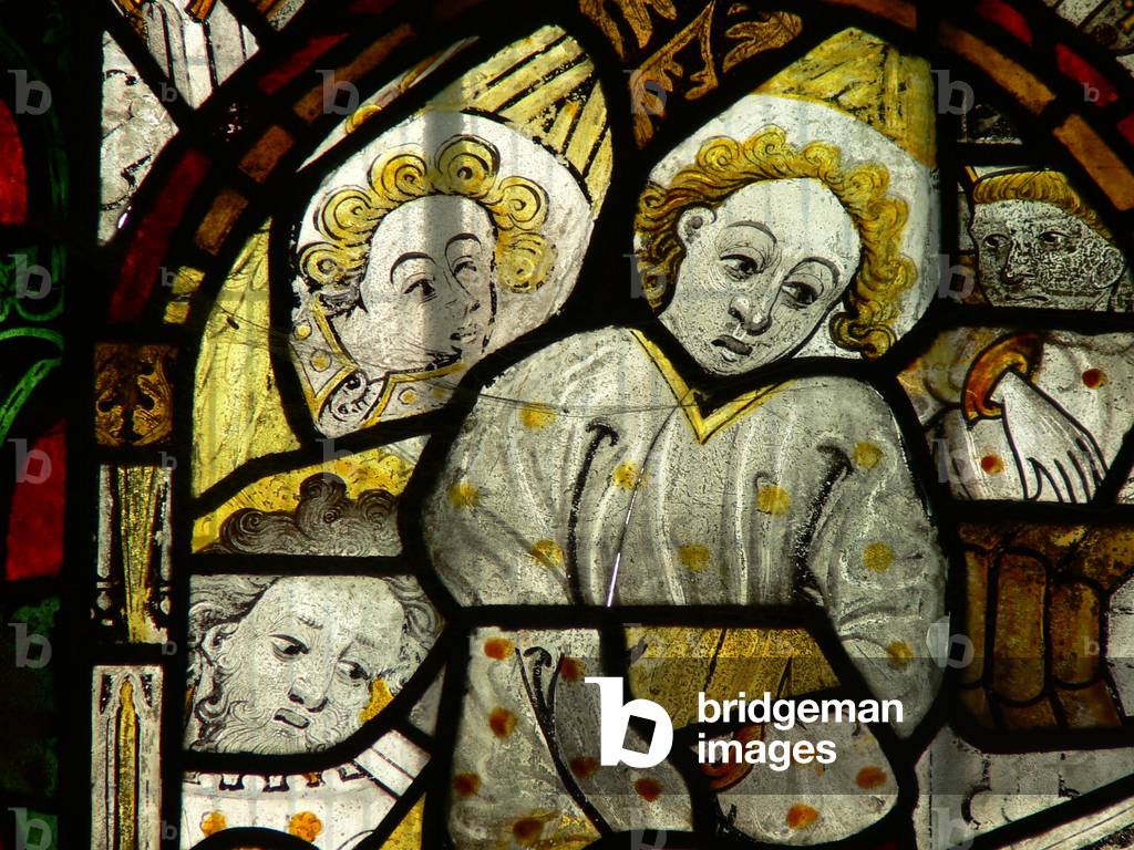 KW6266845 Stratford-upon-Avon, Warwickshire, England. Stained glass windows in Holy Trinity Church. William Shakespeare and Anne Hathaway are buried in the church.