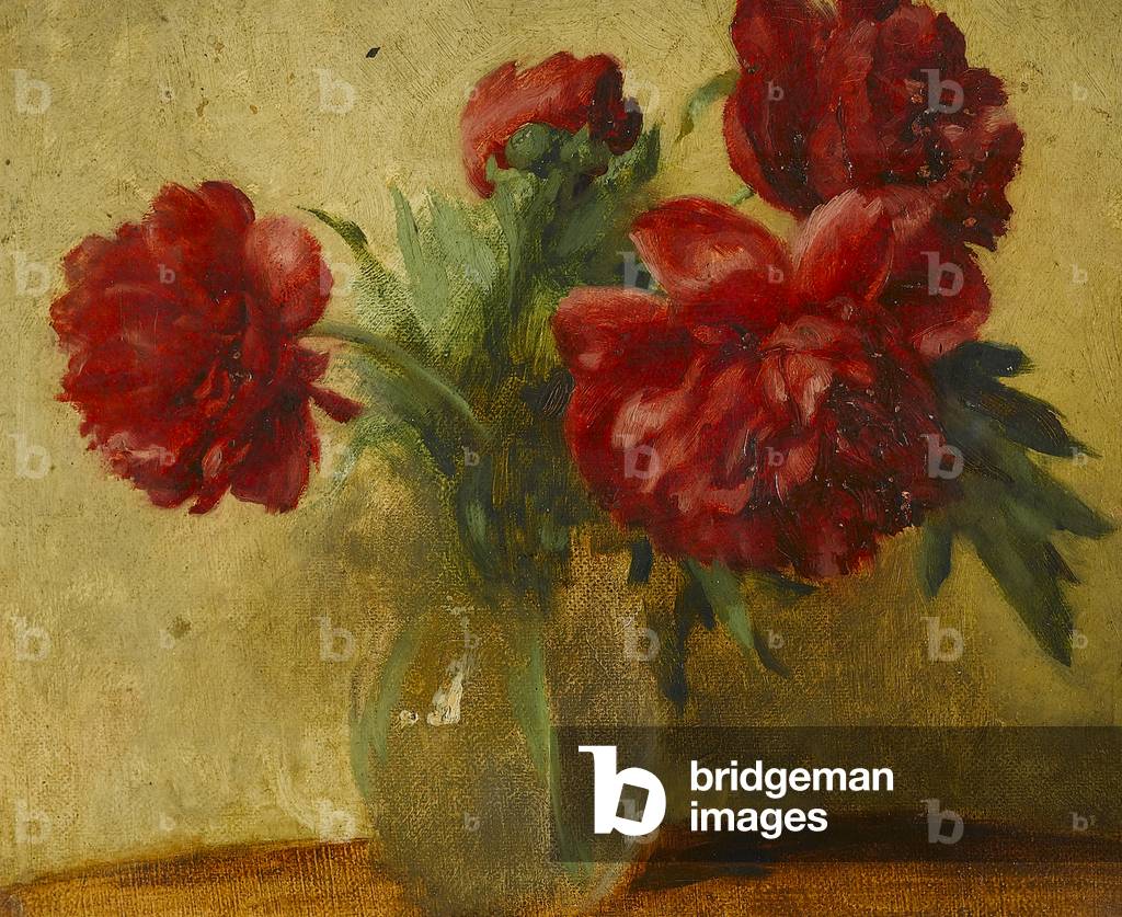 FIA5371435 ""La composition du bouquet"" (Composing a Bouquet) Une femme de la bourgeoisie (hongroise ?) preparant un bouquet de fleurs, sa fille la regarde. Peinture de Mihaly Munkacsy (1844-1900) 1880 environ Musee Pouchkine, Moscou