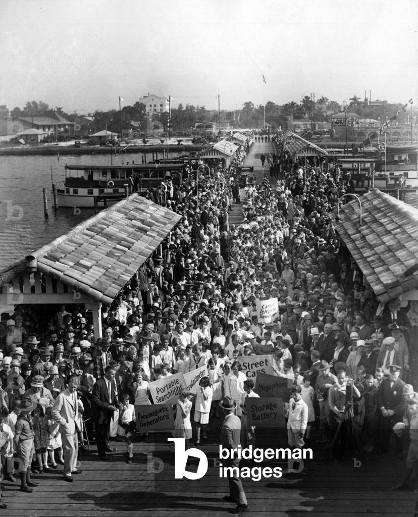 ETE4129462 Fort Myers (Florida), USA, February 1928:81st birthday of Thomas Edison (1847-1931). School parade in honor of the American inventor. They carry signs indicating the various inventions of Edison - Fort Myers, Florida, USA, February 1928: Schoolchildren stage parade on Thomas Edison's 81st birthday