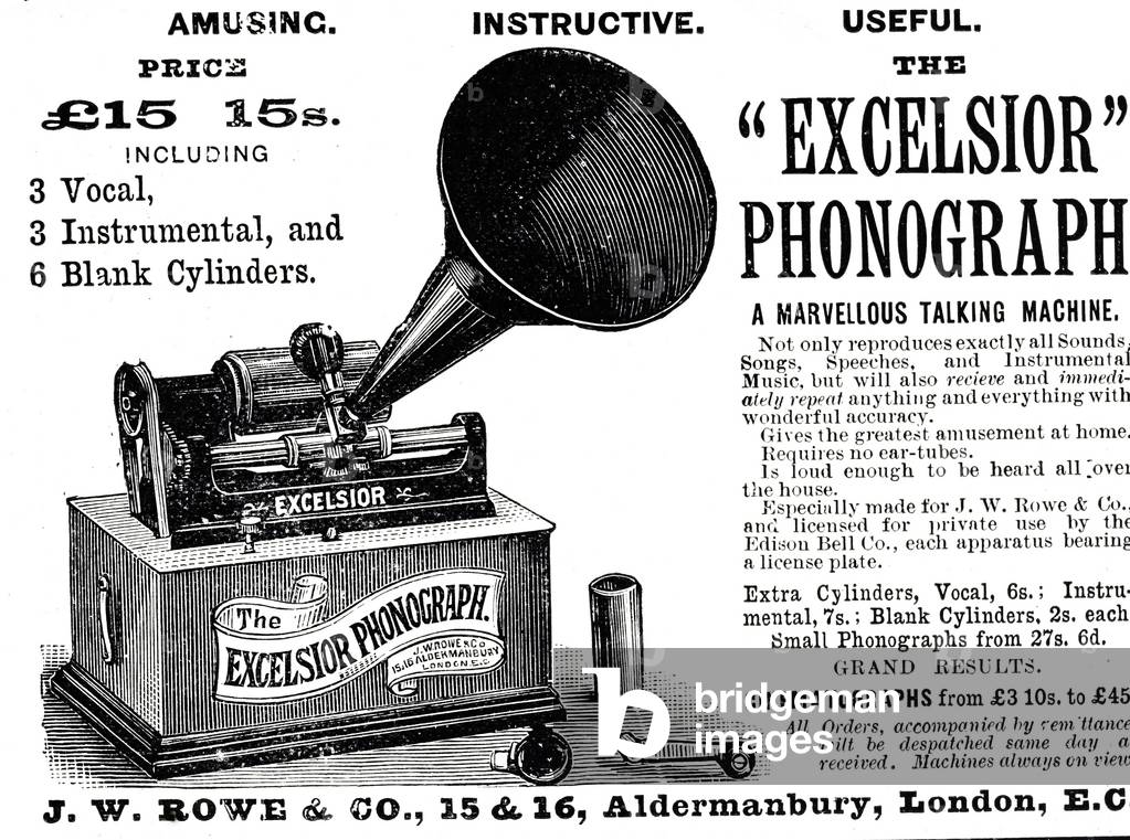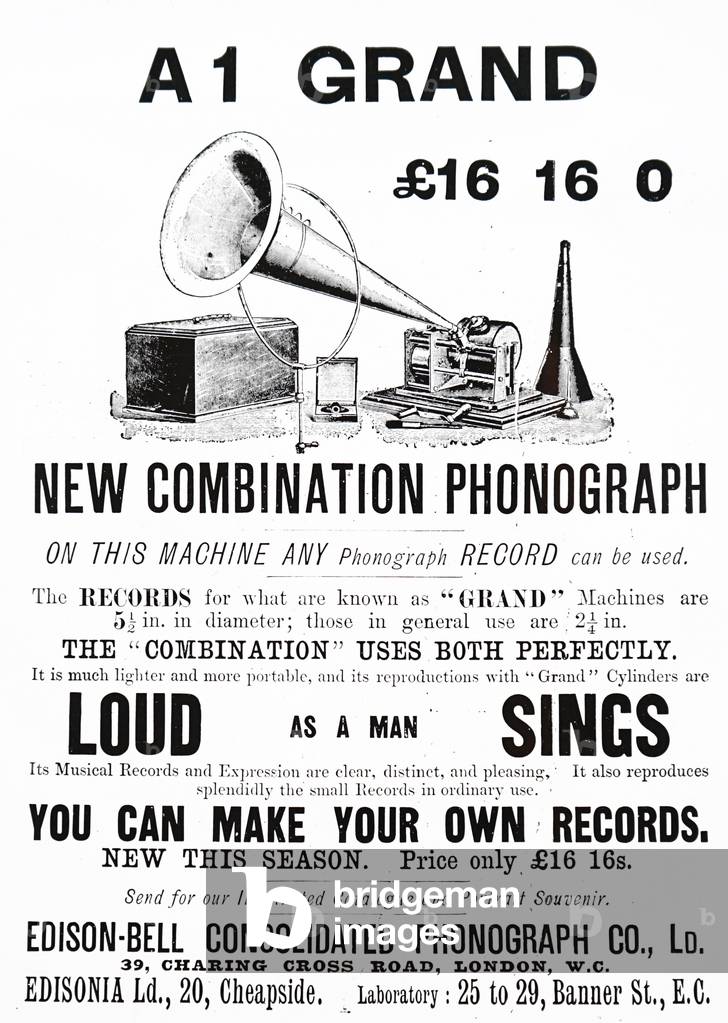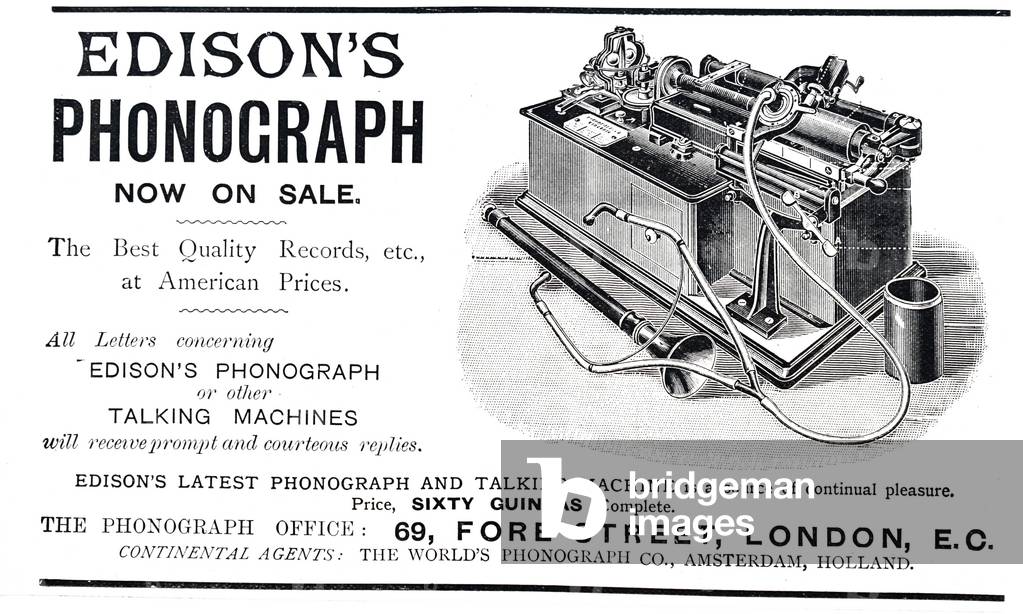 UIG5308678 Advertisement for a Edison phonograph. A phonograph is the mechanical recording and reproduction of sound. Invented by Thomas Edison (1847-1931) an American inventor and businessman. Dated 19th century01/02/1897