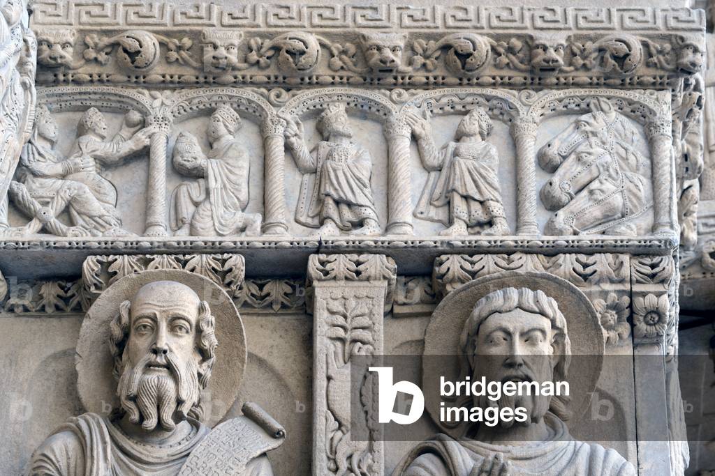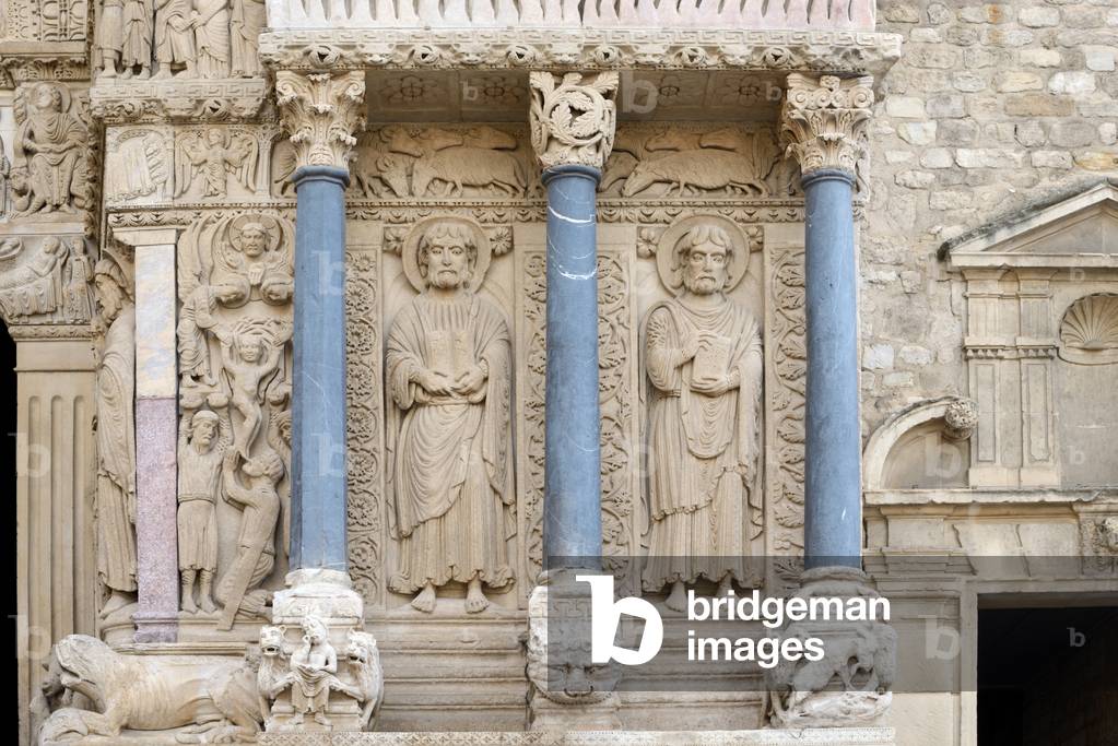 FBU4235820 Decor of the portal of the church of Saint Trophime (Saint Trophime)/Apotre: Saint John (left) and Saint Peter./UNESCO class site