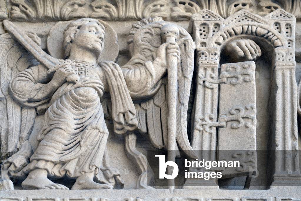 HLR5891548 Romanesque Sculpture of Warrior Archangel Saint Michael & Gateway to Heaven Church of Saint Trophime Arles France
