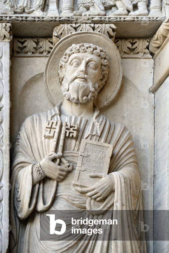 HLR5891559 Romanesque Sculpture of Saint Peter Holding the Keys of Rome on the Façade of the Church of Saint Trophime Arles France