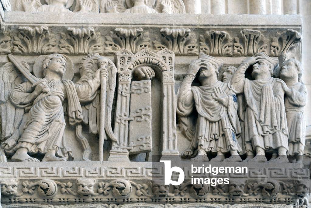 HLR5891565 Herod the Great; King of Judea; & Three Roman Soldiers on Façade of the Church of Saint Trophime Arles France