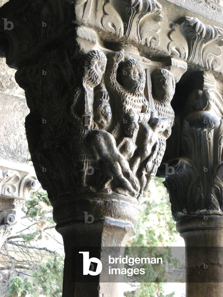 FBU4228629 Cloitre Saint-Trophime (Saint Trophime)/South East Pillar: The benitier of the canons, the well and Gamaliel on the right/Arles/UNESCO class site
