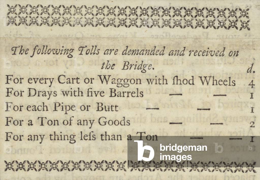 LLJ2776140 Schedule of tolls for using a bridge (possibly London Bridge).