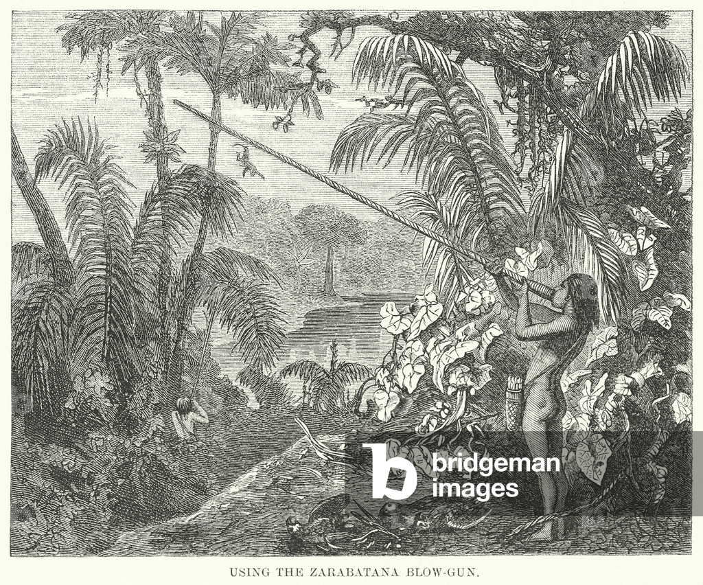 LLM11722968 Using the Zarabatana Blow-Gun. Illustration for The Natural History of Man by J G Wood (George Routledge, 1870).By English School (19th Century)