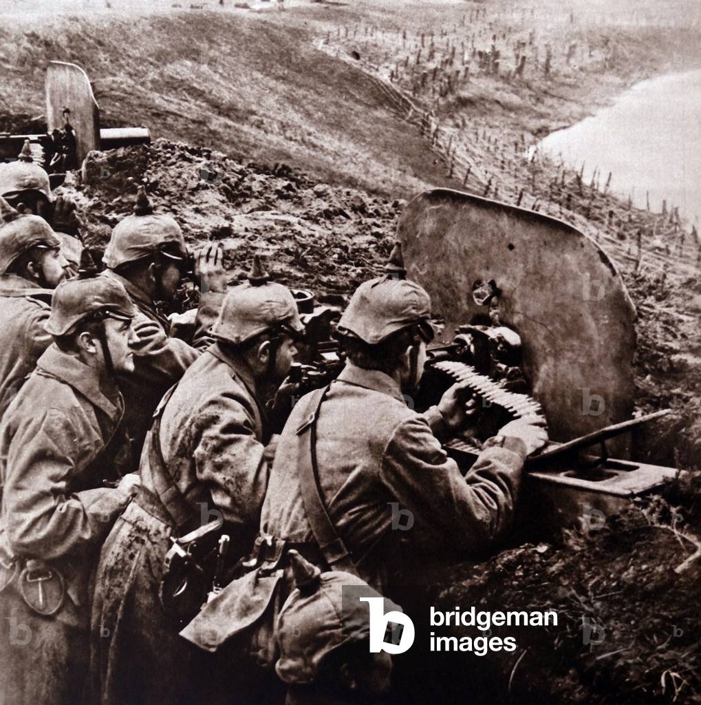 UIG3078962 Photographic print of German soldiers using a machine gun during The Great War. Dated 20th Century.