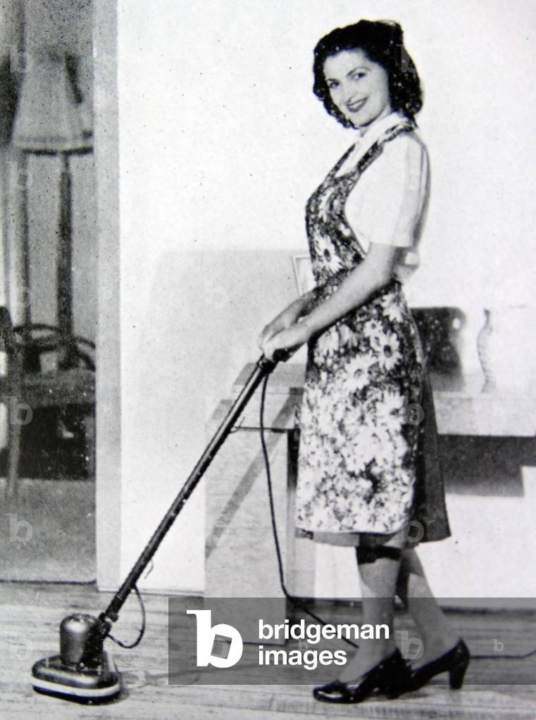 UIG3523323 Photograph of a housewife using floor buffer