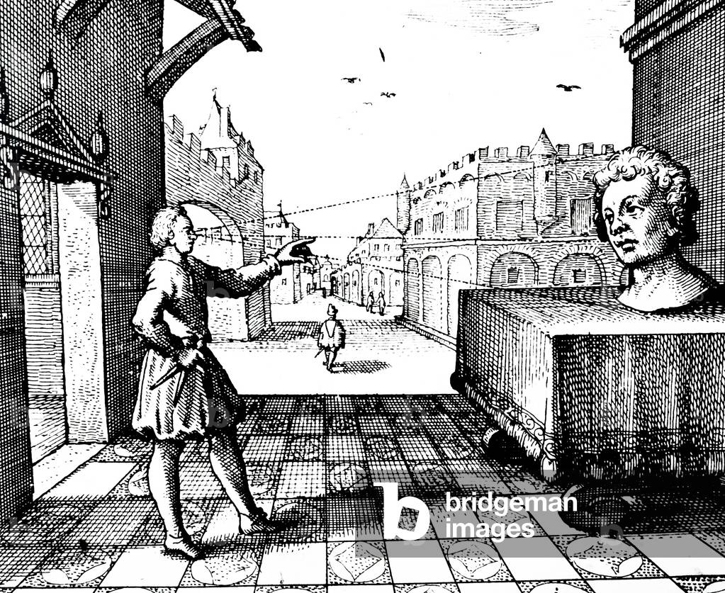 UIS5093841 Surveyors using graphometers, 1597. Plate taken from 'Use of the Graphometer' (Paris, 1597) by Philippe Danfrie (1525-1606). Developed originally in France, the graphometer was an angle measuring iinstrument used like a theodolite. ©SSPL/Science Museum
