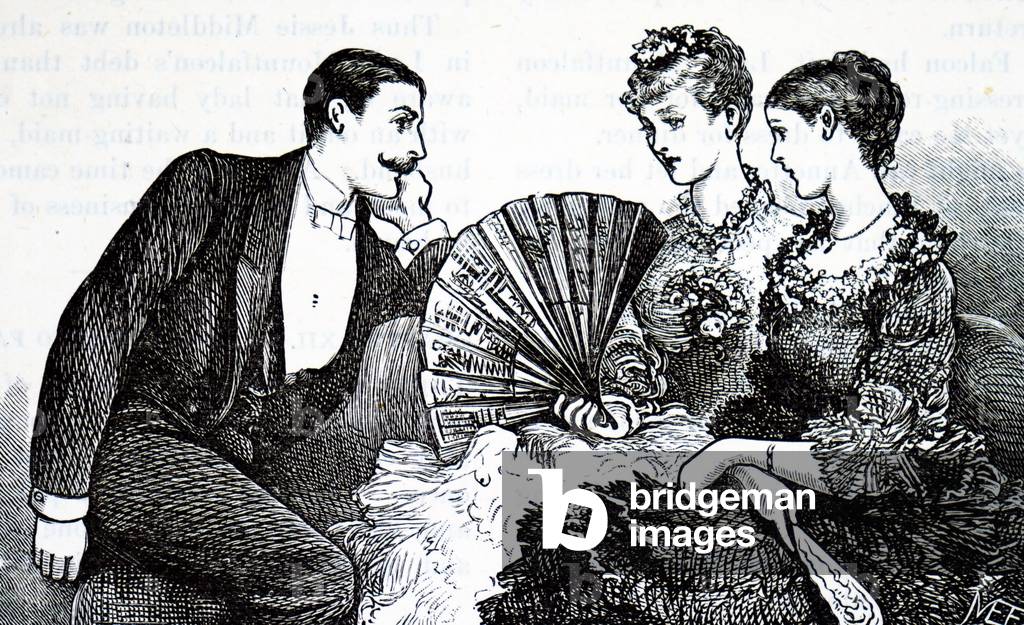 UIG5307918 Illustration depicting a wealthy young lady using a fan to cool herself down. Illustrated by Mary Ellen Edwards (1838-1934) an English artist and children's books illustrator. Dated 19th century. 01/01/1850