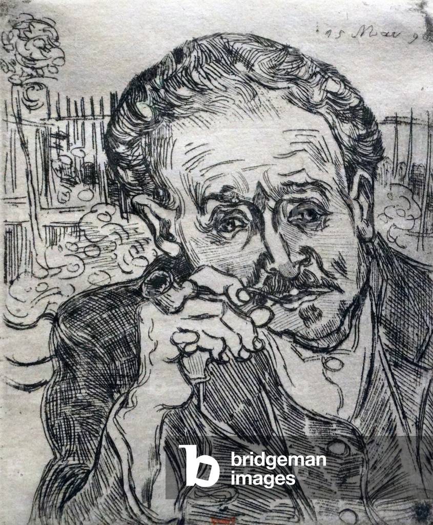 UIG2911236 1890Portrait of Dr Gachet' by Vincent van Gogh. The only etching that van Gogh ever produced, Gachet was his doctor and also a keen artist. Etching, Dutch, 1890.