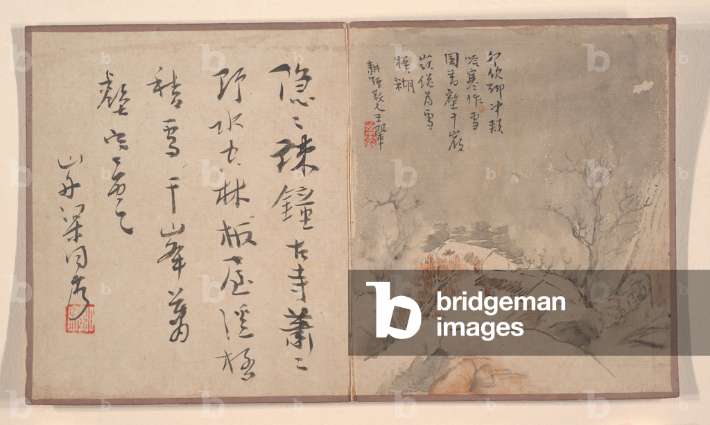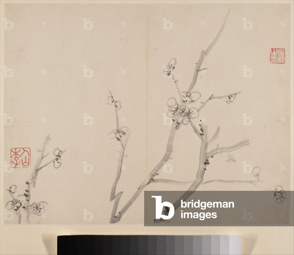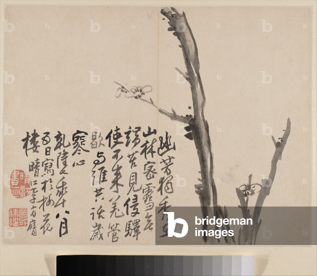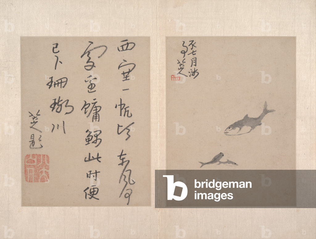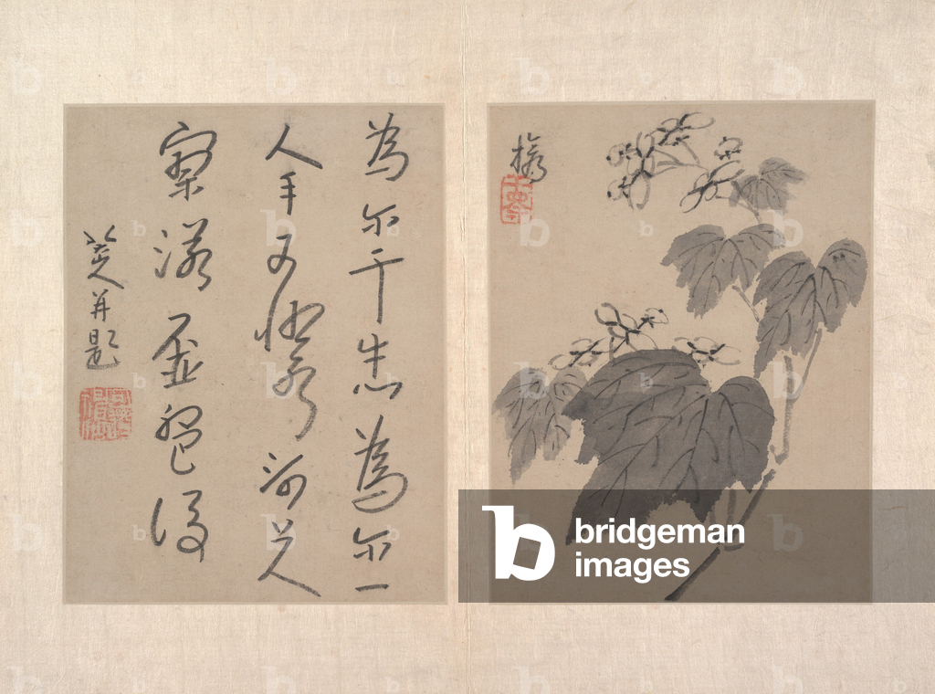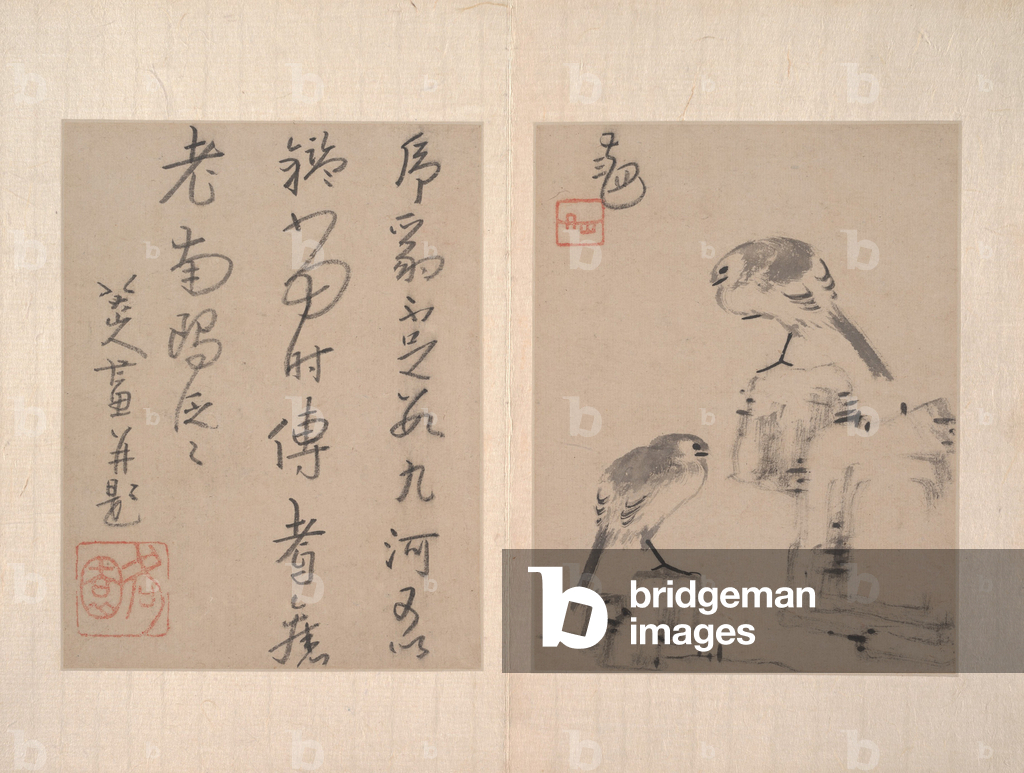XOS11876713 China; Attributed to Bada Shanren (Zhu Da) (Chinese, 1626-1705); Qing dynasty (1644-1911). Paintings; Image: 7 3/4 in.x6 in. (19.7x15.2 cm) Sheet: 11 in.x7 1/4 in. (27.9x18.4 cm) double leaf: 11x14 5/8 in. (27.9x37.1 cm)