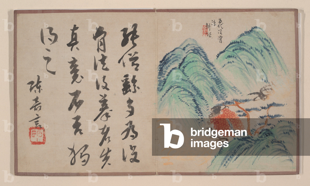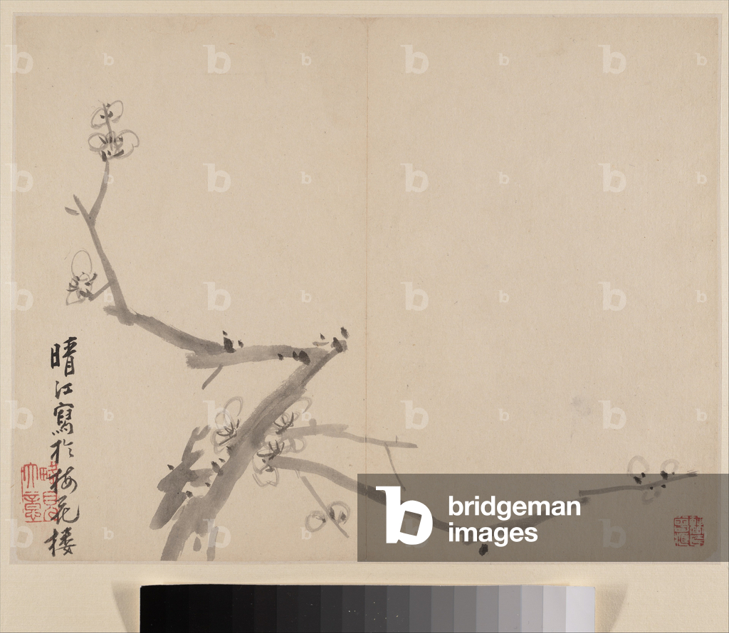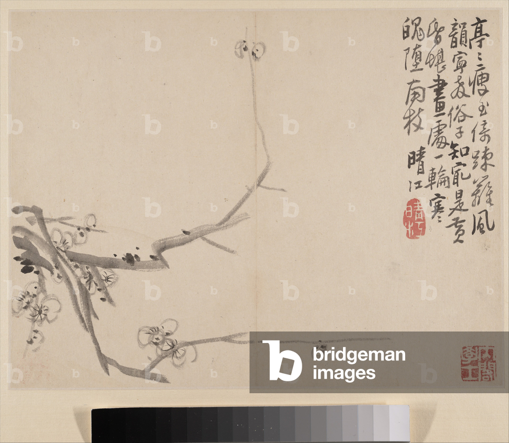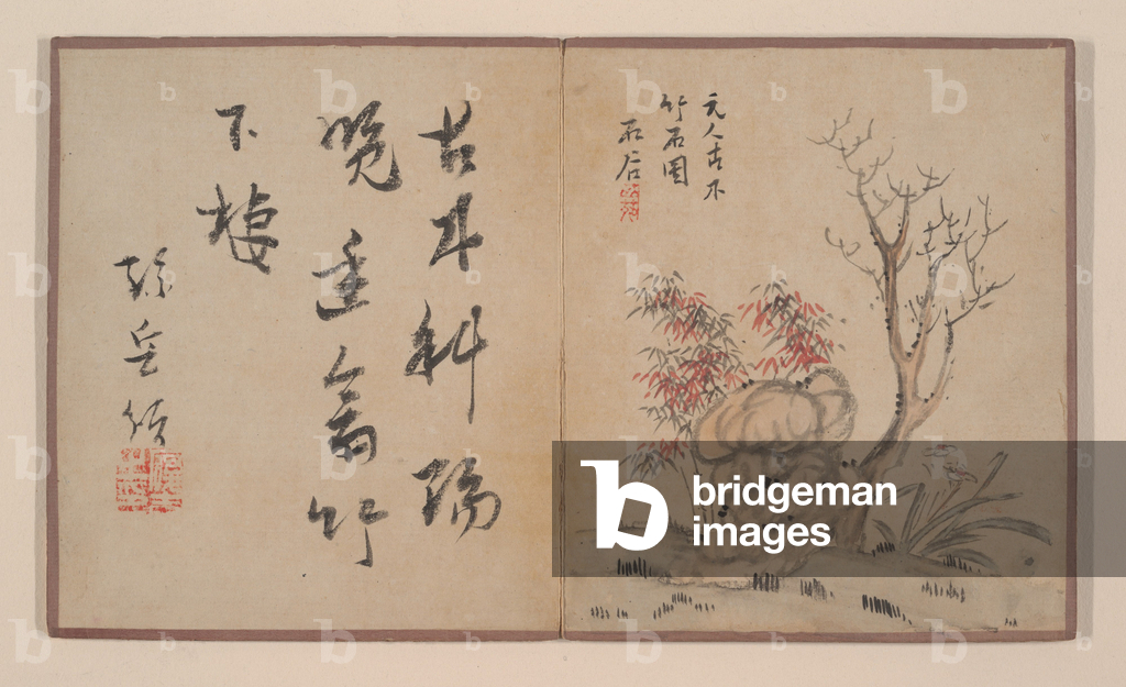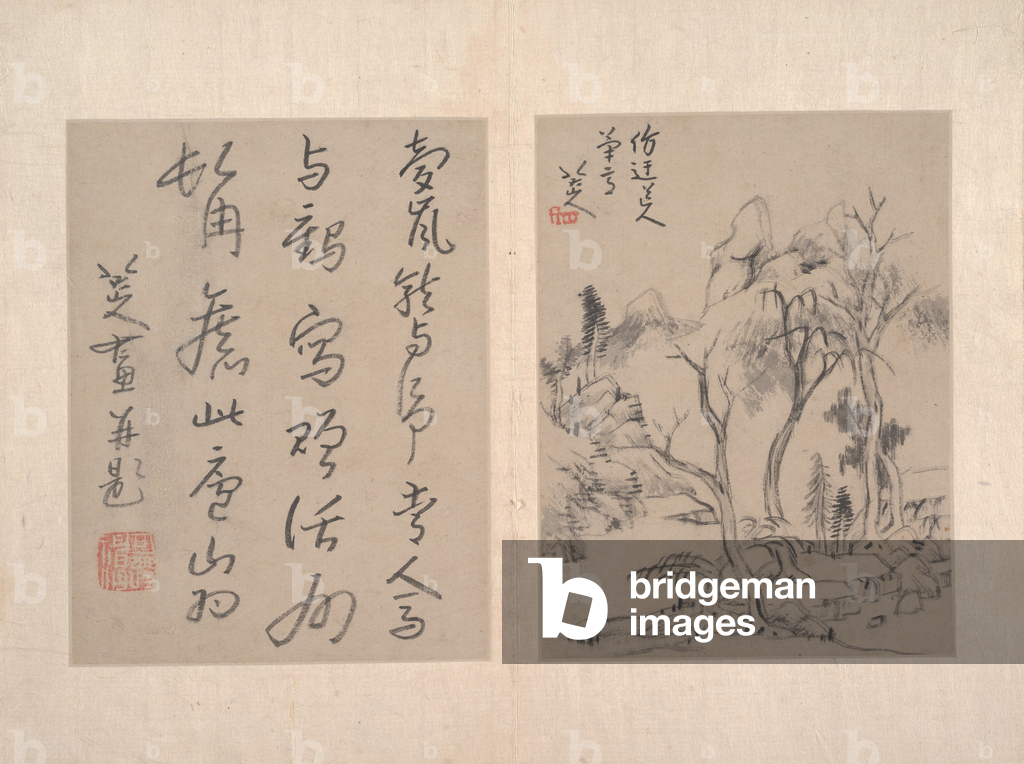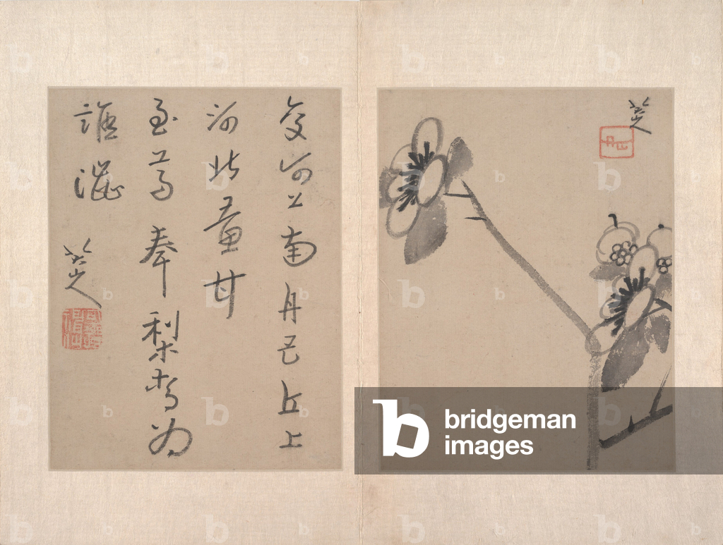 XOS11876712 China; Attributed to Bada Shanren (Zhu Da) (Chinese, 1626-1705); Qing dynasty (1644-1911). Paintings; Image: 7 3/4 in.x6 in. (19.7x15.2 cm) Sheet: 11 in.x7 1/4 in. (27.9x18.4 cm) double leaf: 11x14 5/8 in. (27.9x37.1 cm)