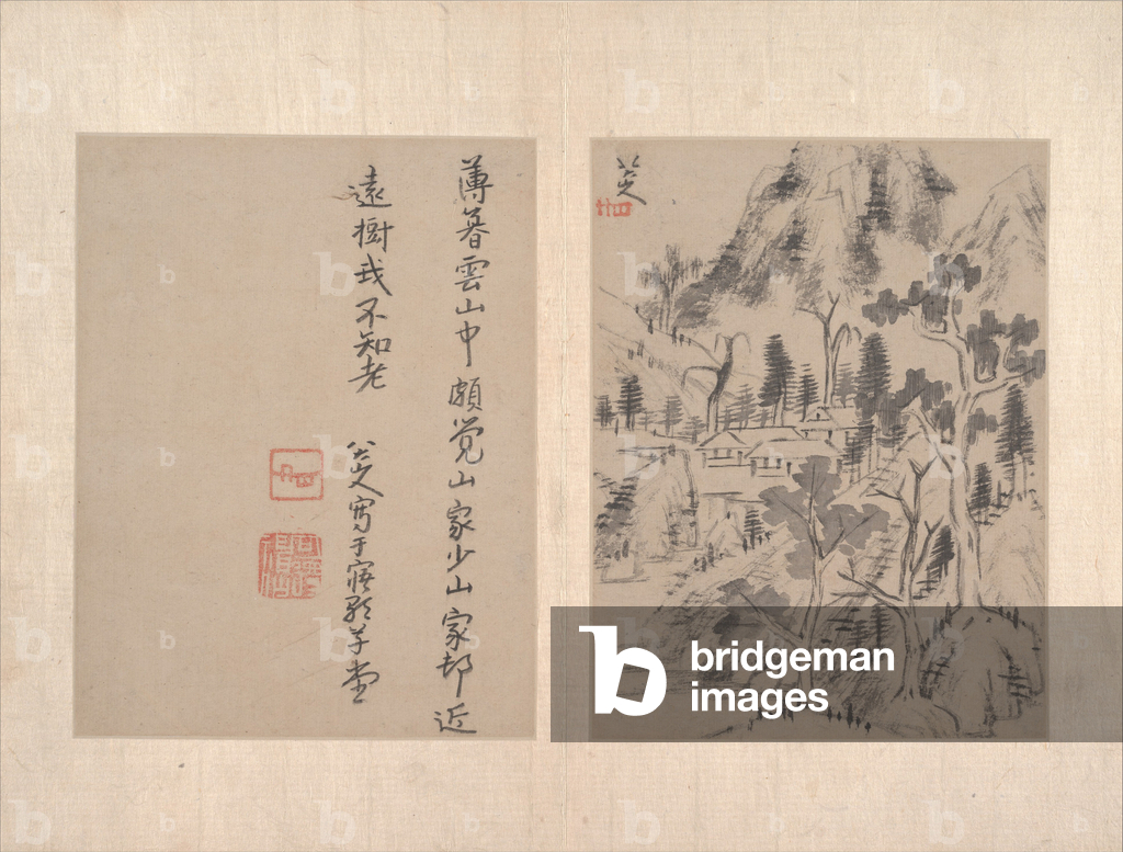 XOS11876703 China; Attributed to Bada Shanren (Zhu Da) (Chinese, 1626-1705); Qing dynasty (1644-1911). Paintings; Image: 7 3/4 in.x6 in. (19.7x15.2 cm) Sheet: 11 in.x7 1/4 in. (27.9x18.4 cm) double leaf: 11x14 5/8 in. (27.9x37.1 cm)