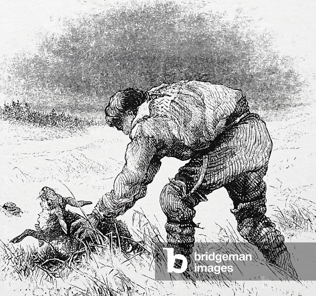 UIG5616261 Cartoon depicting a man poaching. Dated 19th Century. 01/01/1880