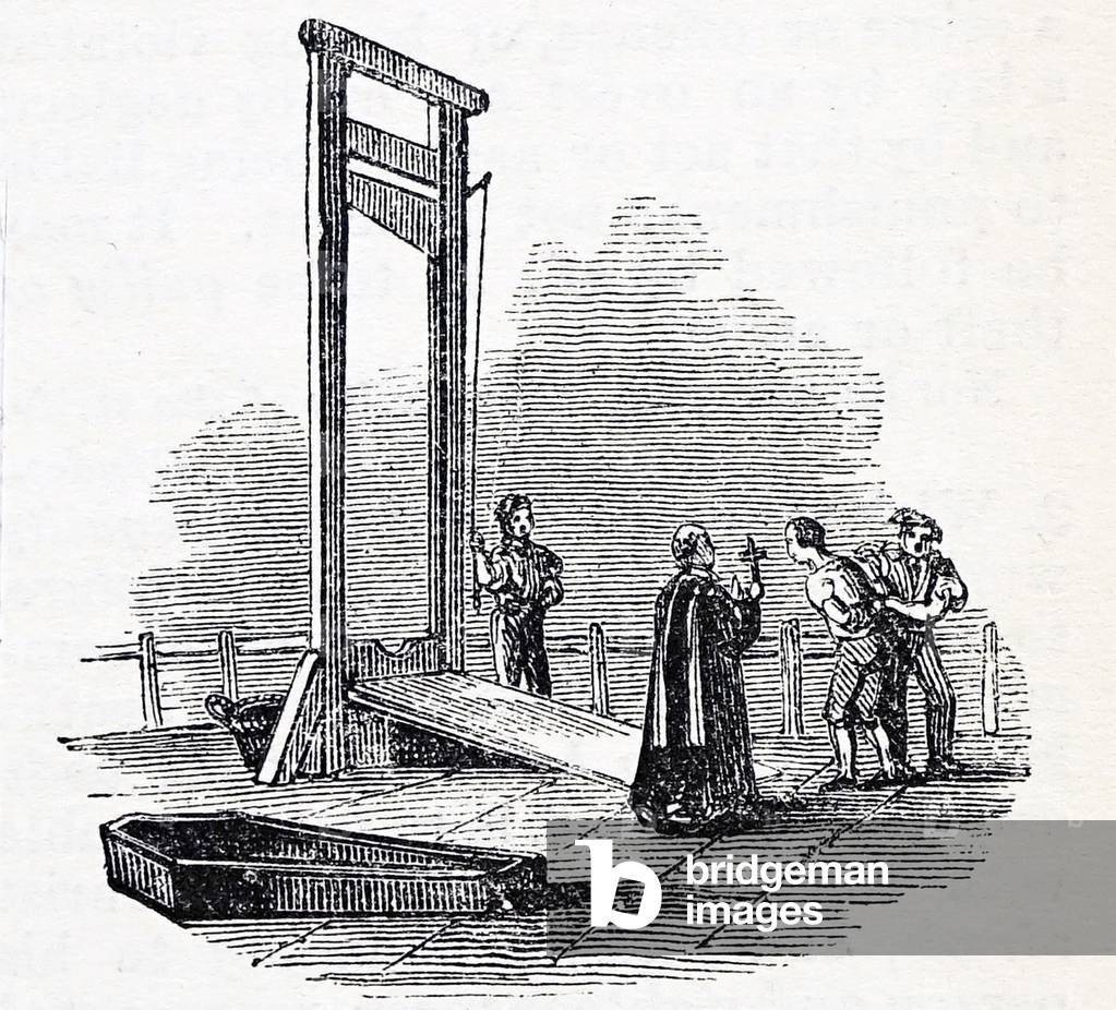 UIG5616159 Illustration depicting a condemned man being led to his execution at the guillotine. Dated 19th Century. 01/01/1836