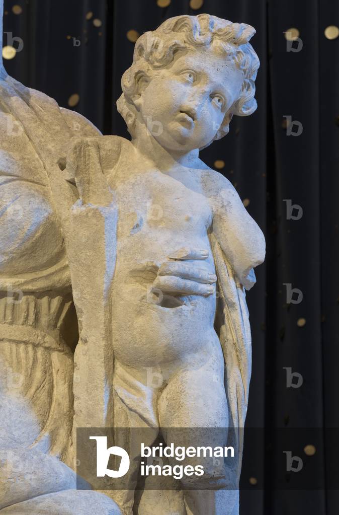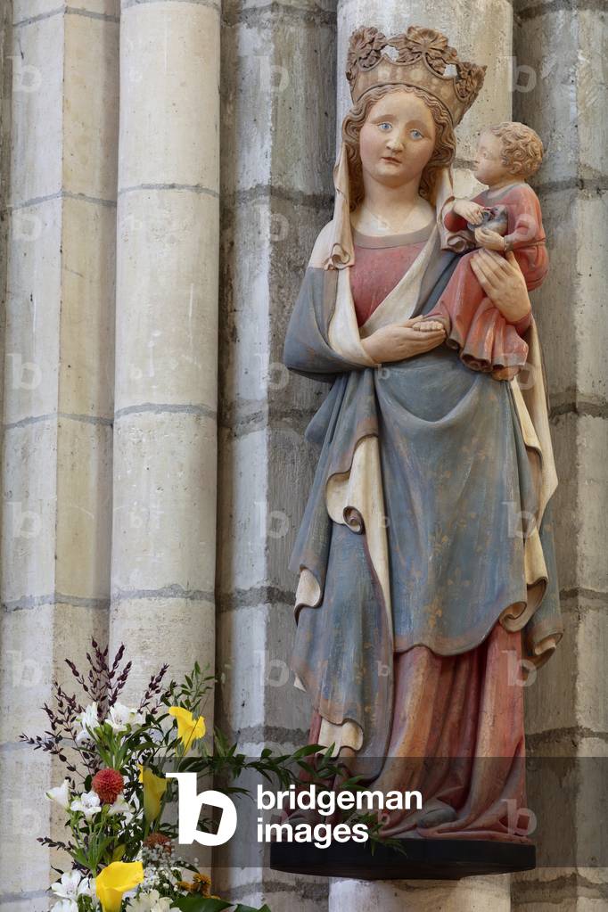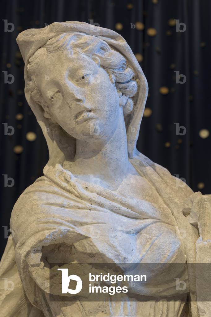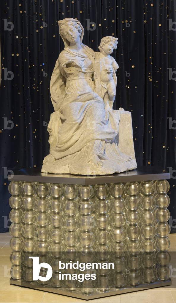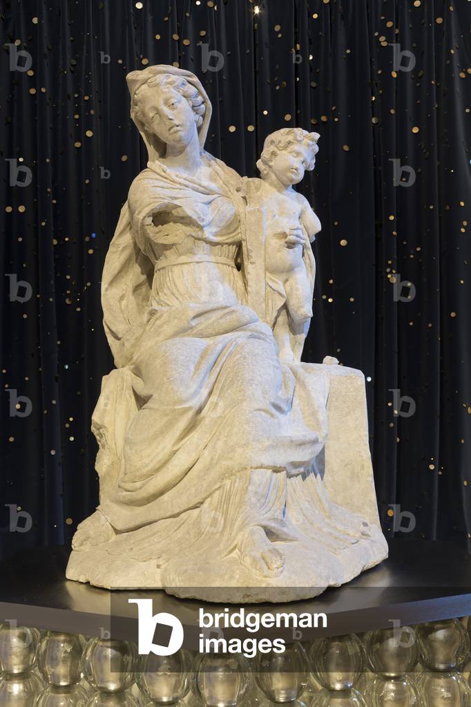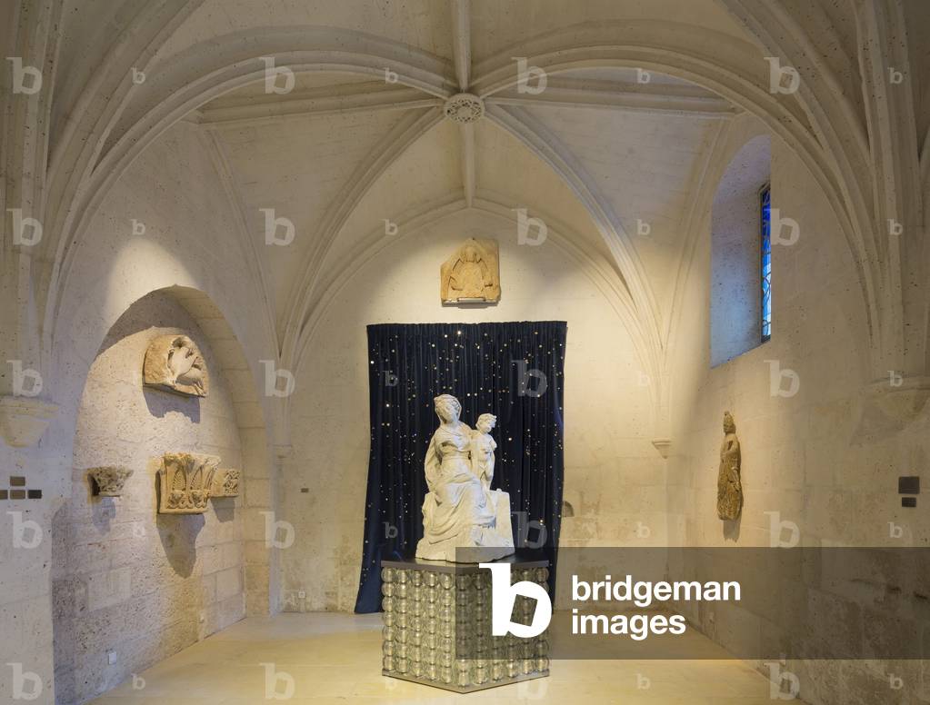 ITR7110223 salle lapidaire Vierge à l’enfant de Jean Degoullons (?-1687) 1679 albâtre. Trésor de la cathédrale Saint-Pierre 16000 Angoulème.le trésor a été mis en scène par Jean-Michel Otoniel entre 2014 et 2016