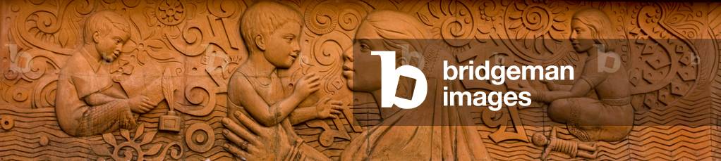 UIG2620233 Terracotta sculpture, of a mother with her child and children reading books on the memorial monument titled 'Moder Gorob' (Our pride), in front of Bangla Academy building, in Dhaka, Bangladesh. February 5, 2009.