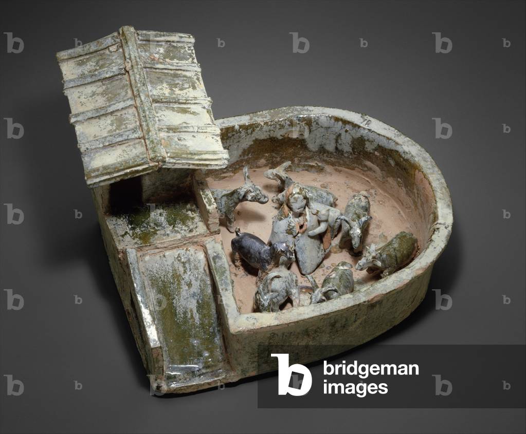 XOS5049884 Mingqi or "spirit utensils" in Eastern Han dynasty burials included replicas of farm animals, utilitarian objects, and entertainers believed to provide nourishment and amusement for the soul of the dead.