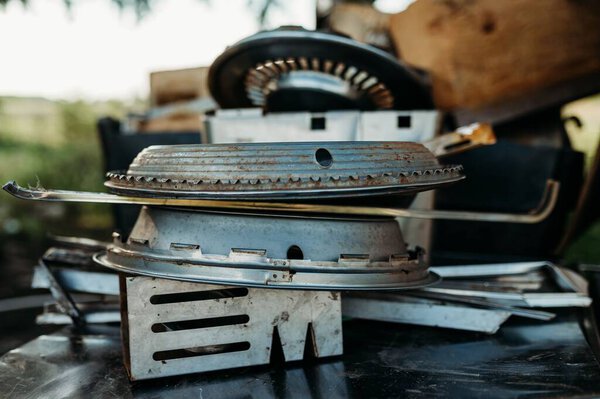 597321328 A shallow focus shot of a collection of used and old objects in the recycling center