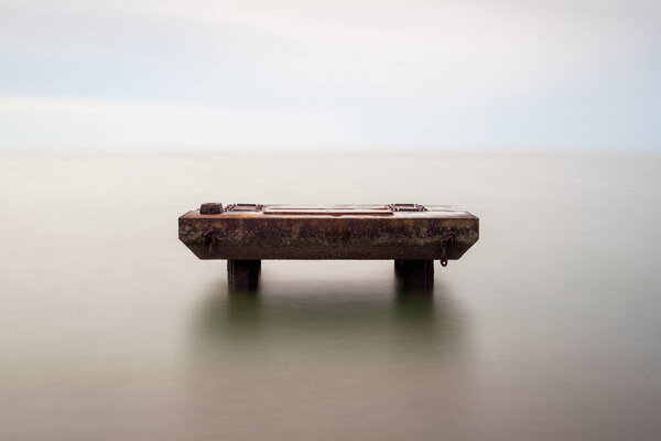 647260524 Landscape of the Tagus river in Lisbon at sunrise. Abstract minimalist fineart with long exposure effect. Geometric and symmetrical lines with soft colors.