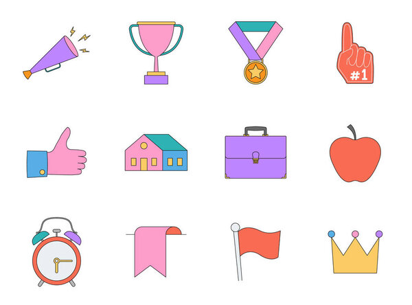 662871734 Icon Set for Business Success Including Megaphone, Microphone, Trophy, Bullseye, and More