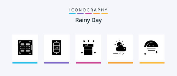 636275610 Rainy Glyph 5 Icon Pack Including rainbow. season. dry. rainy. cloud. Creative Icons Design