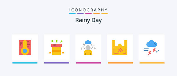 636391846 Rainy Flat 5 Icon Pack Including supermarket. plastic. resistant. ecology. rainy. Creative Icons Design