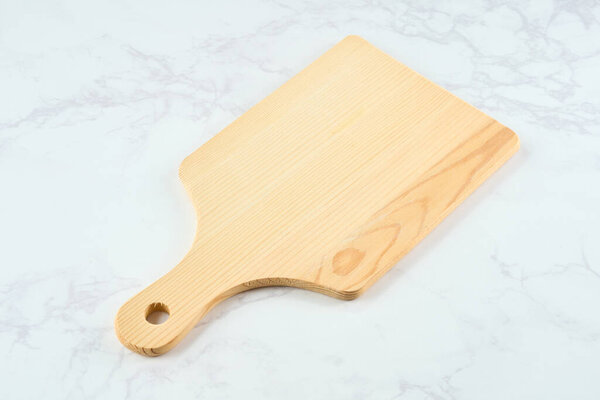 654161396 A closeup of a wooden cutting board isolated on a white background